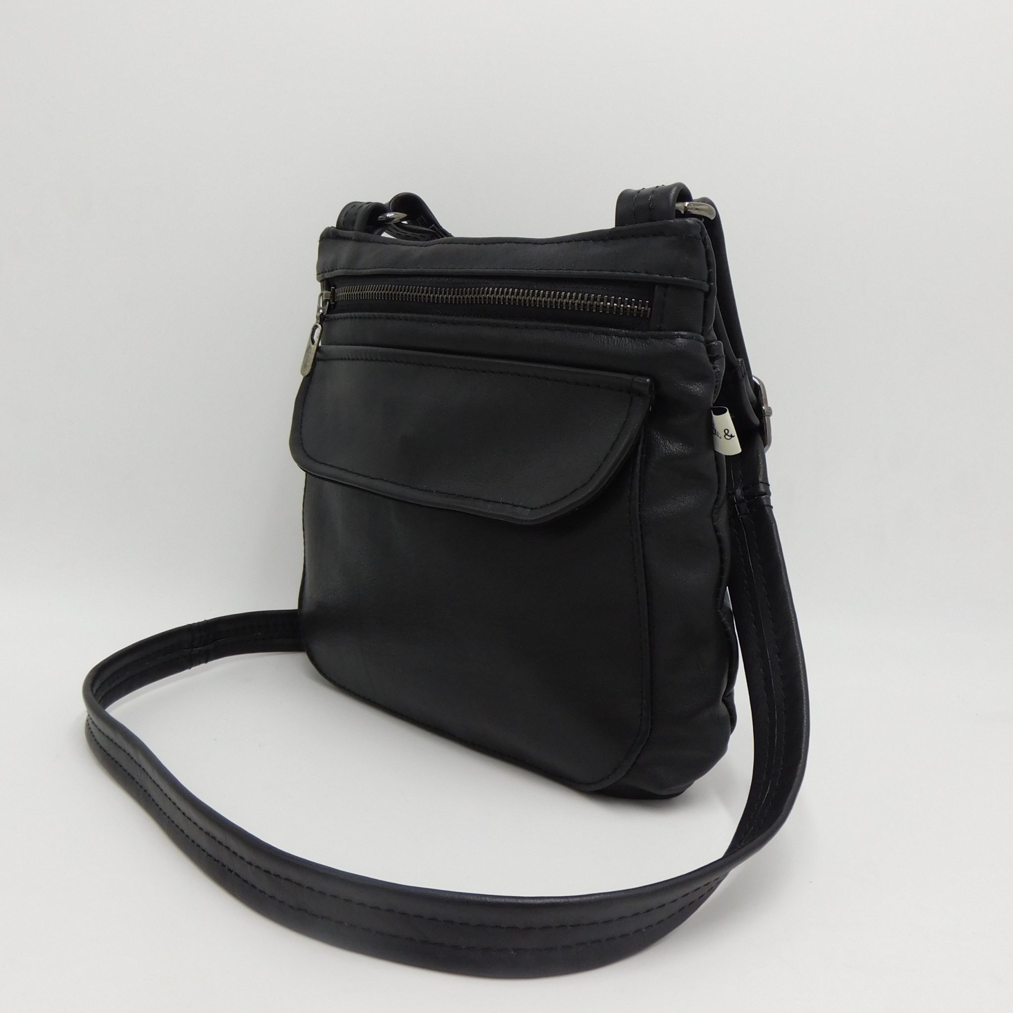 Il possède 2 poches extérieures : 1 à rabat sur le devant avec une pression aimantée ou un fermoir tourniquet selon les modèles et 1 zippée au dos – ainsi que 2 poches intérieures, dont 1 zippée.