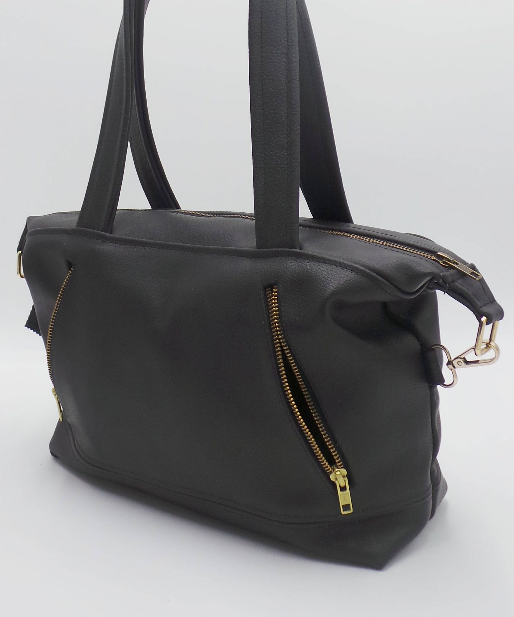 4 poches pour s’organiser : 2 zippées en diagonale devant, 1 zippée intérieure, 1 plaquée intérieure.