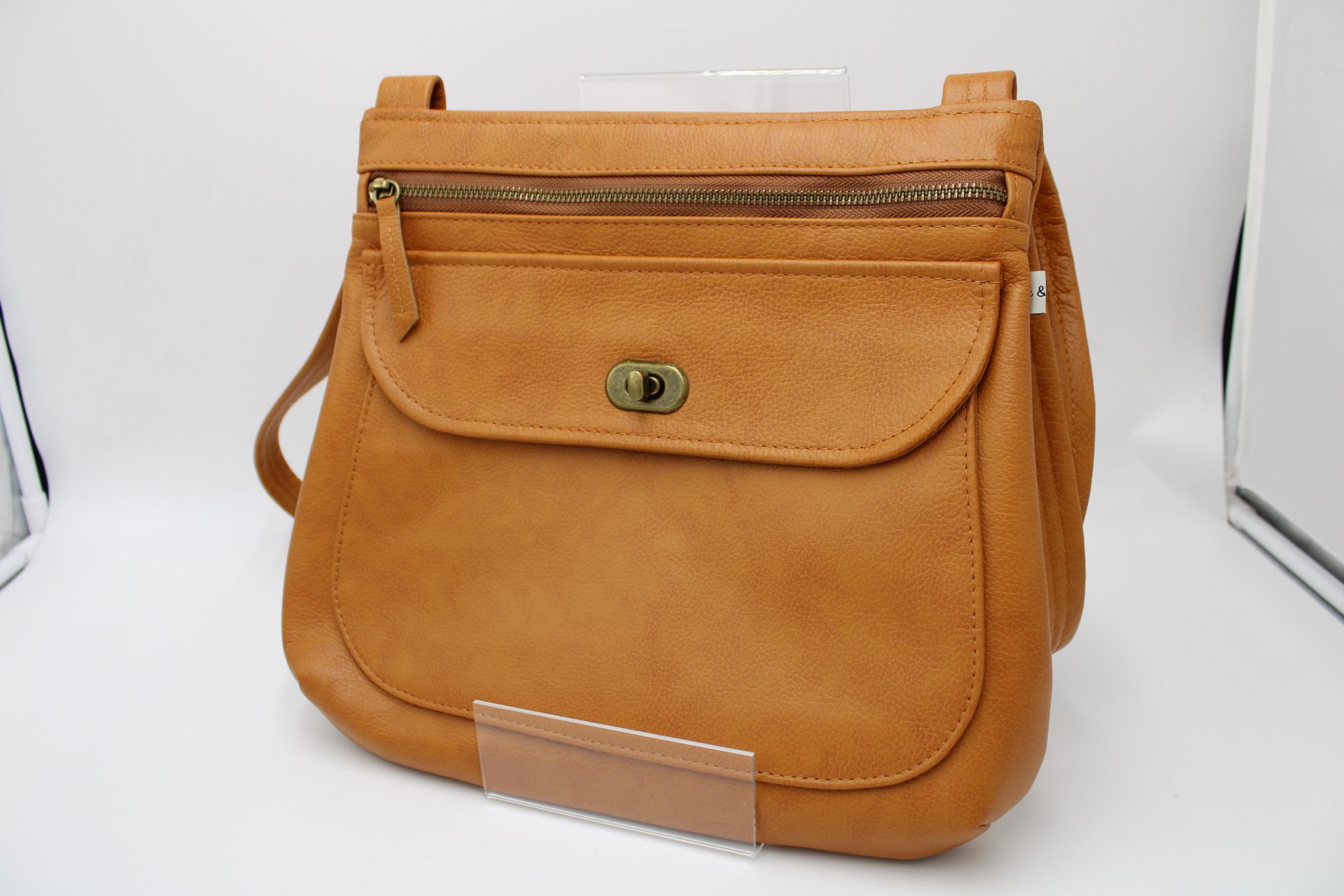 Il possède 2 poches extérieures : 1 à rabat sur le devant avec une pression aimantée ou un fermoir tourniquet selon les modèles et 1 zippée au dos – ainsi que 2 poches intérieures, dont 1 zippée.