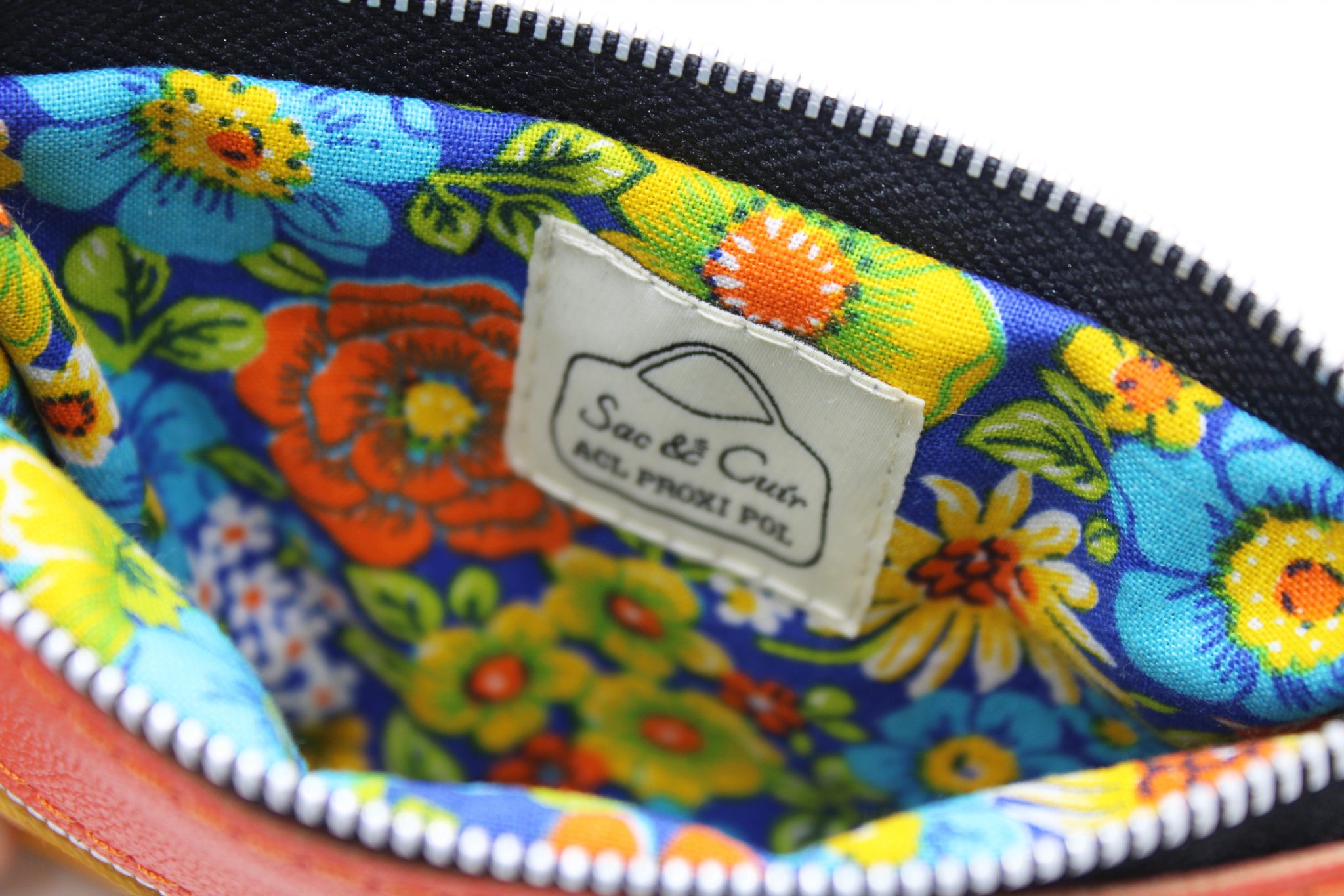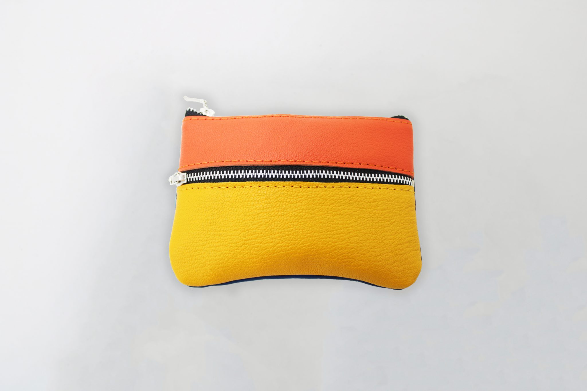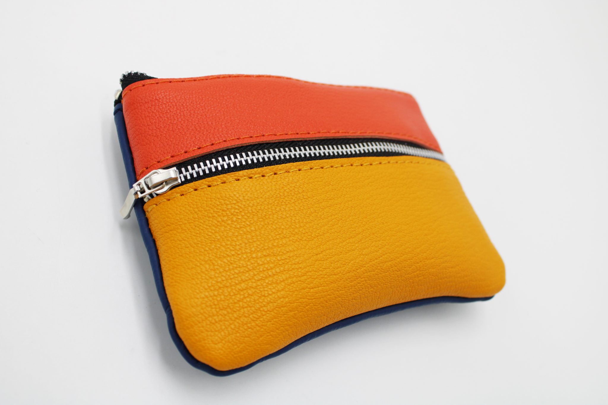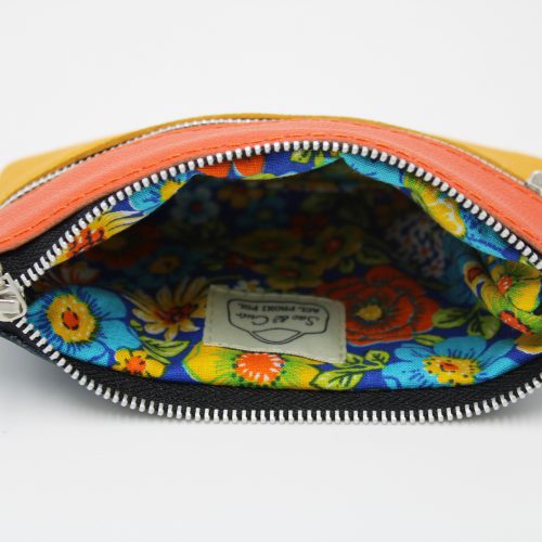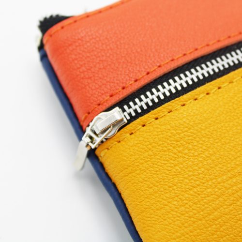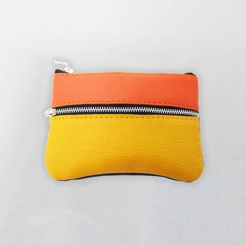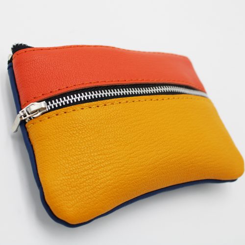 Extérieur en cuir jaune, orange et bleu