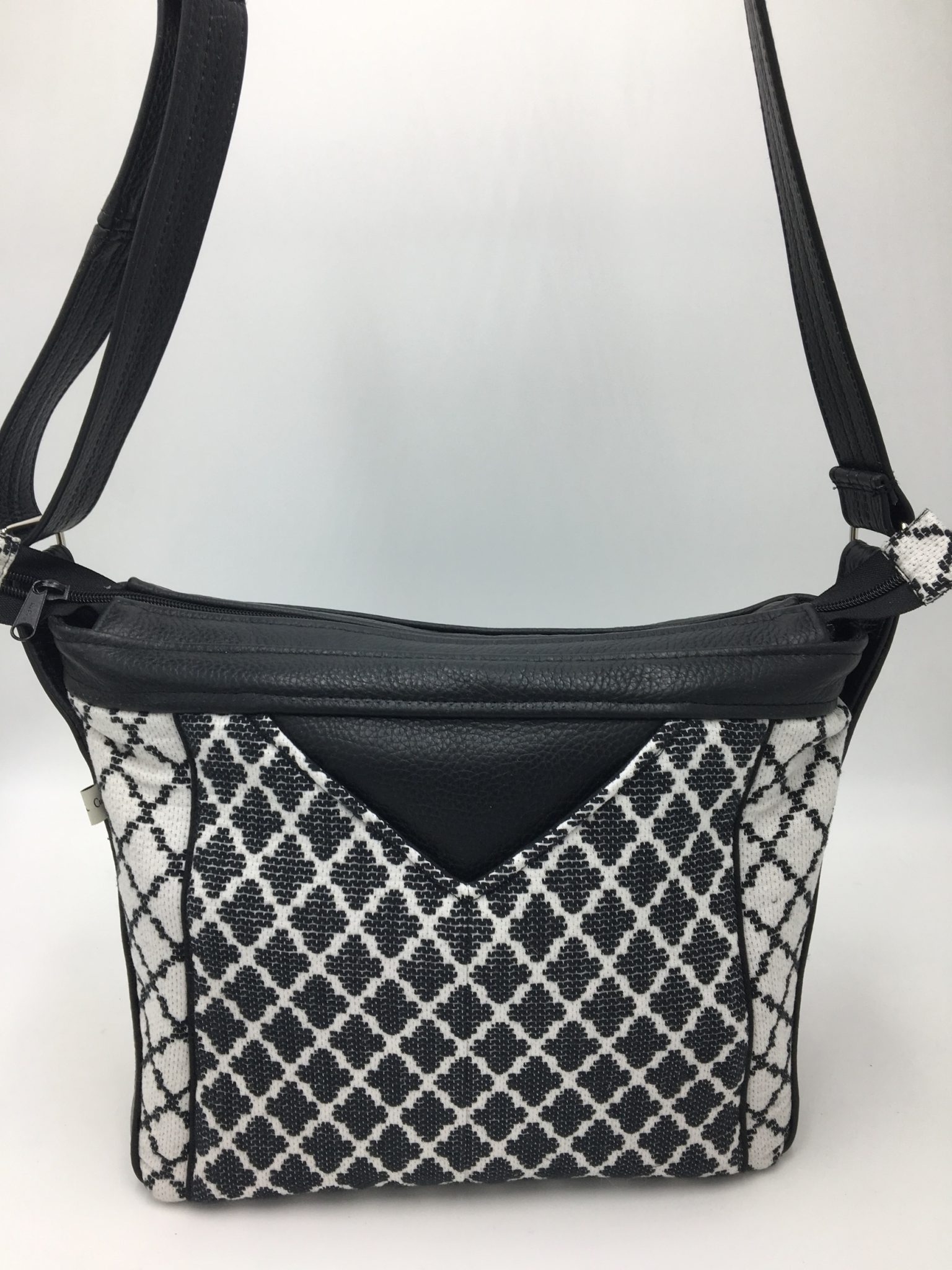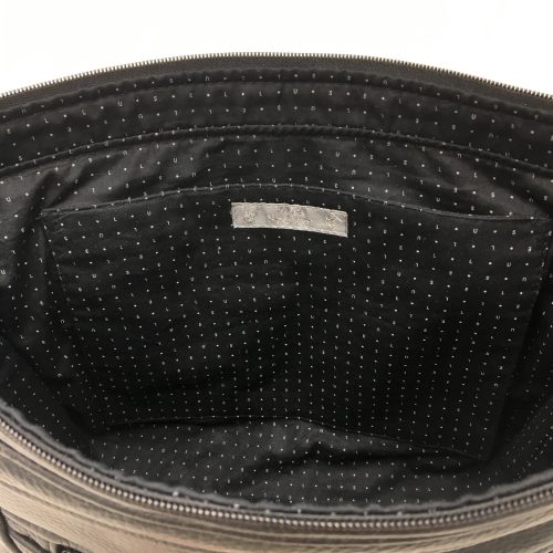 Le sac a 4 poches. L’élément de design en « V » cache une poche fermée par bouton magnétique. Une poche zippée au dos ainsi qu’une poche plaquée et une poche zippée dans la doublure complètent les possibilités de rangement.