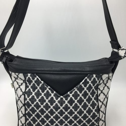 La bandoulière ajustable permet un porter à l’épaule ou en travers du buste.